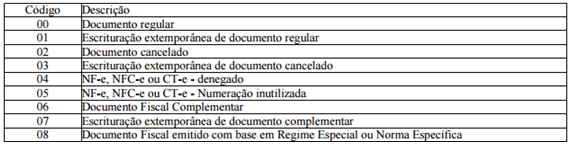 Este novo campo tem por objetivo extrair a situação do documento fiscal para atender ao SPED Fiscal, conforme abaixo: