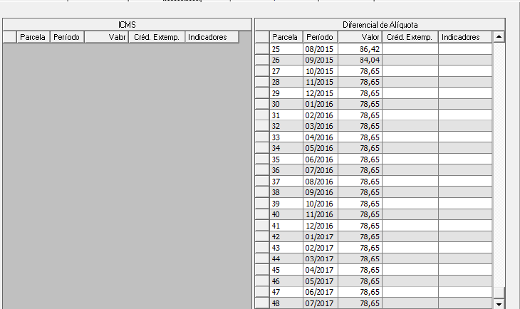 A ficha com Apuração da parcela somente de ICMS Diferencial de Alíquotas, não estava sendo baixada automaticamente quando completava decurso de prazo.