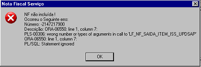 Descrição da Nota: Tratamento na tela para que não ocorra a mensagem ORA-06550.