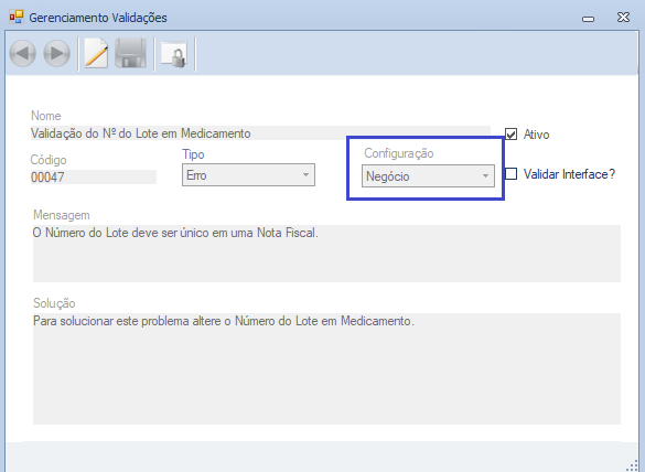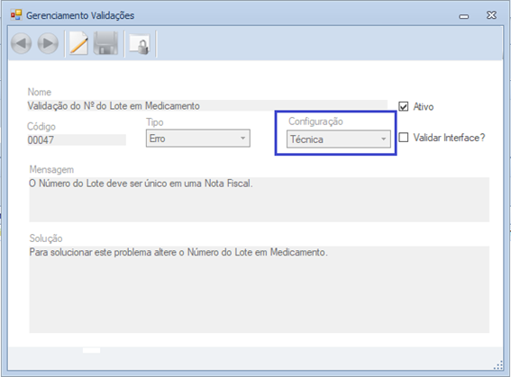 Desta forma, será possível ativar ou desativá-la, conforme a necessidade, inclusive com relação à validação realizada na interface destas informações.