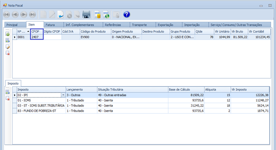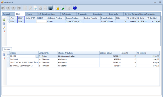 Nele, será necessário configurar o CFOP ou CFOP mais Dígito das operações que integra o IPI na base de cálculo do ICMS, separando-os por vírgula, quando houver mais de uma operação.