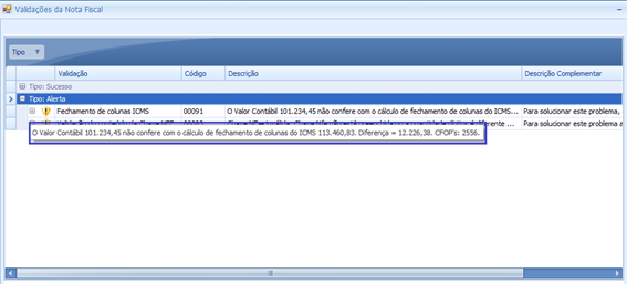 Ao salvar o documento, era apresentada a mensagem de alerta 91 (Fechamento de Colunas – ICMS) indevidamente, indicando que existia uma diferença no fechamento das colunas correspondente ao valor do IPI.