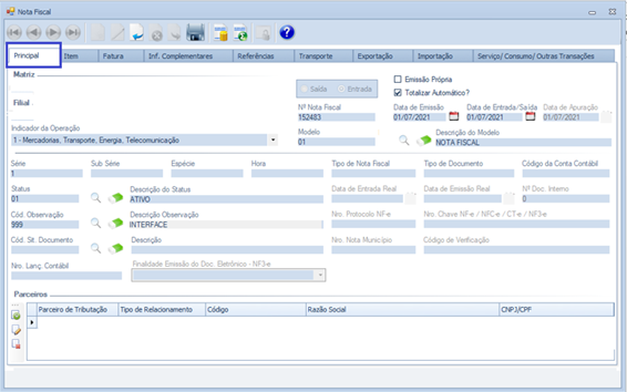 Funcionalidade: NOTA FISCAL