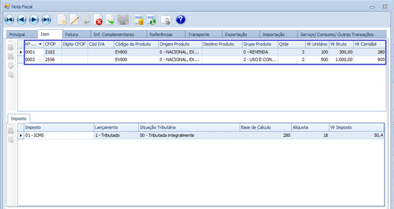 Melhoria na Tela Nota Fiscal permitindo a inclusão de dois ou mais itens no mesmo documento e, ao selecionar a opção editar quando estiver na aba item permanecer na mesma aba.