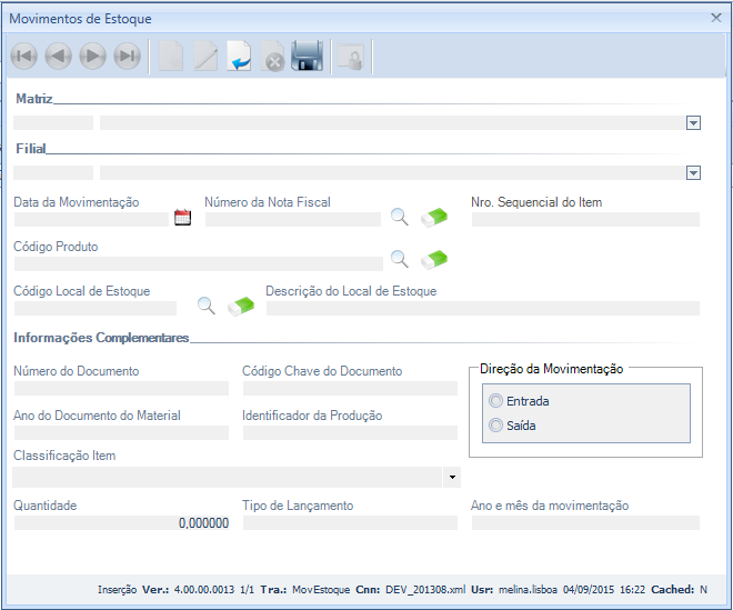 Descrição da Nota: Alteração da funcionalidade de Movimento de Estoque para permitir manutenção de registros.
