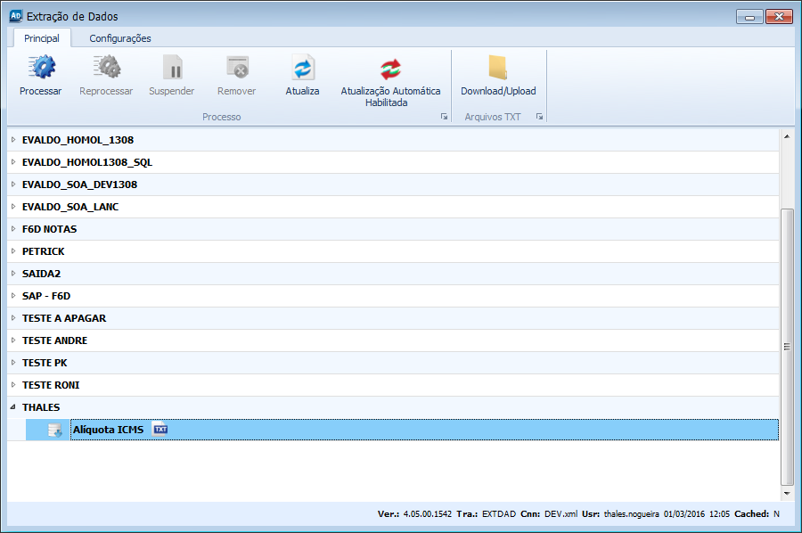 Criação da Extração de Alíquotas a partir de arquivo TXT.