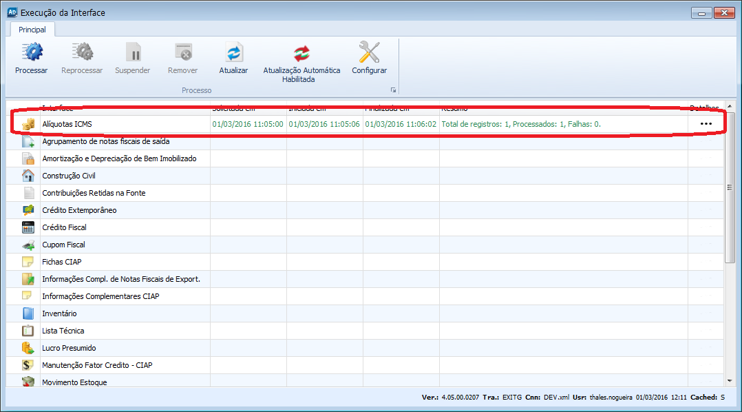 Descrição da Nota: 1) Criação da Extração de Alíquotas a partir de arquivo TXT. 2) Criação da Interface de Alíquotas.